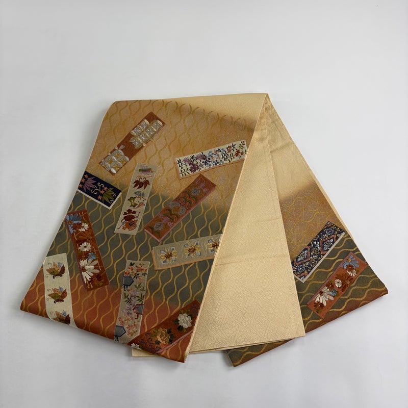 【袋帯】 茶系 茶色 秀品 B 帯丈436cm以上 4000-7980 二万以下