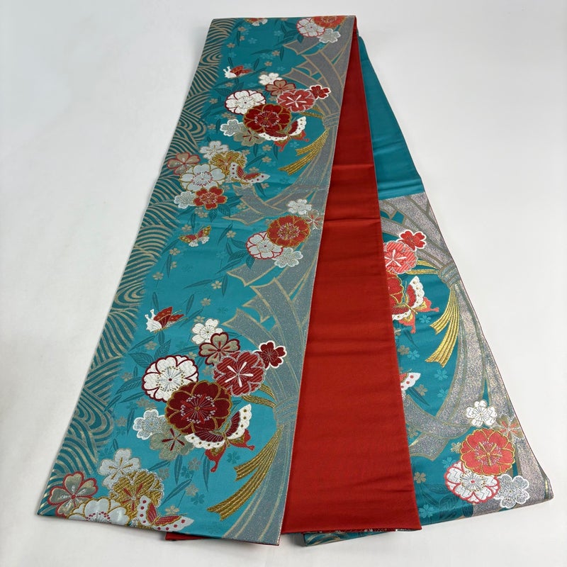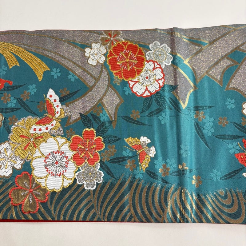 【袋帯】 青系 青緑 秀品 B 帯丈426cm~435cm 4000-7980 二万以下