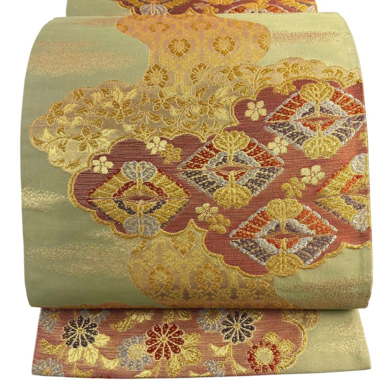 【袋帯】 緑系 抹茶色 秀品 A 帯丈426cm~435cm 7990-9980 美品 二万以下