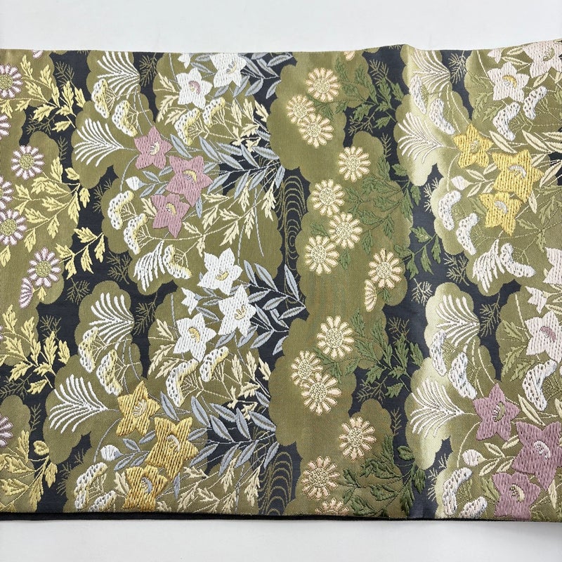 【着物ランク】秀品 【素材】正絹 【帯丈】約442cm 【帯幅】約31.5cm 【帯仕立て】仕立て上がり 【状態ランク】ランクB 【帯着用シーン】セミフォーマル(色無地・付下げ)