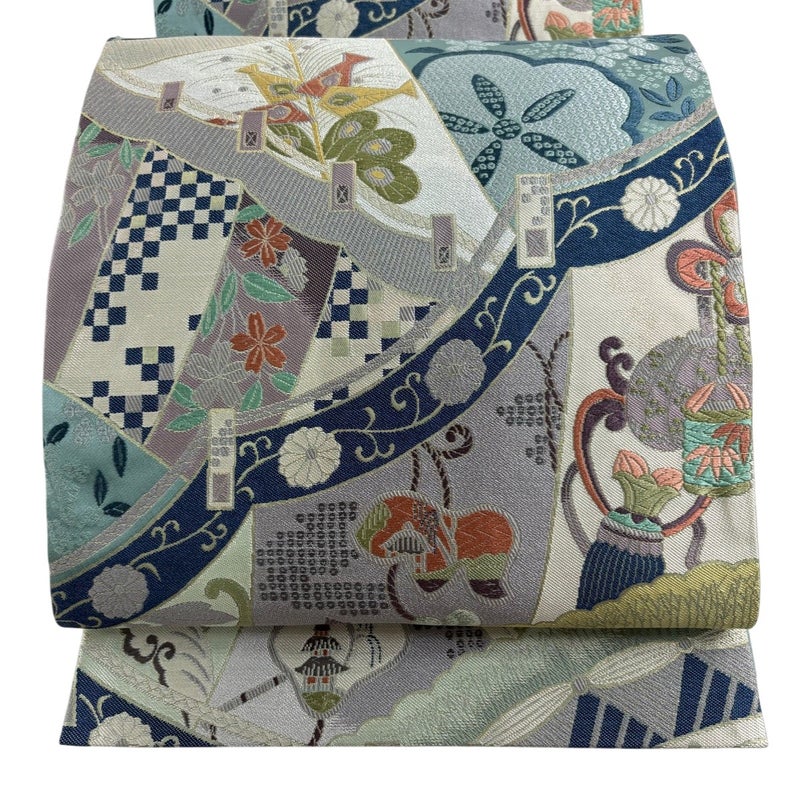 【袋帯】 青系 薄青緑 秀品 A 帯丈436cm以上 7990-9980 美品 二万以下