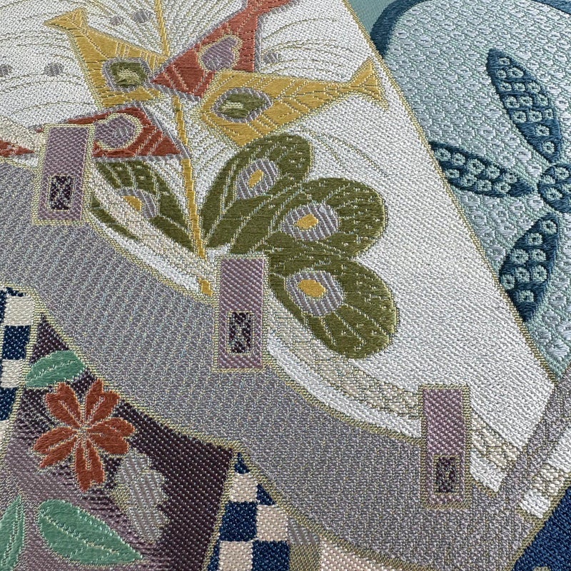 セミフォーマルでお使いいただける袋帯でございます。 見る人に重たい印象を感じさせない女性ならではの、気品豊かな一品です。 帯芯が入っておりません。 締め跡がございます。 中無地に生地のヨレ、お太鼓垂先間にシワがございます。 裏地の垂先付近にシミがございます。 リユース品としては目立った染み傷なく、状態の良いお品でございます。 ※なお、厳しく商品の状態確認を行っておりますが、記載の汚れ以外にも見落とし箇所がある可能性がある旨ご了承いただけますと幸いです。 沢山の商品の中からご覧いただき誠にありがとうございます。