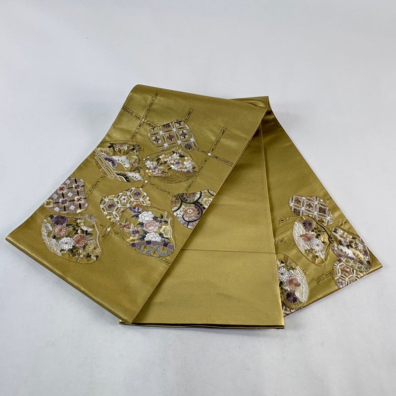 【袋帯】 黄色系 からし色 秀品 A 帯丈436cm以上 7990-9980 美品 二万以下