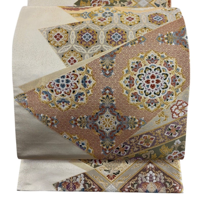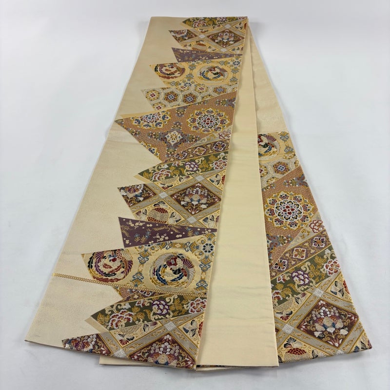 【袋帯】 白系 ベージュ 秀品 A 帯丈426cm~435cm 7990-9980 美品 二万以下