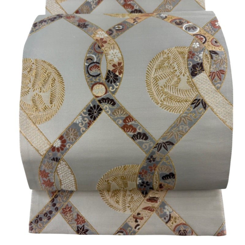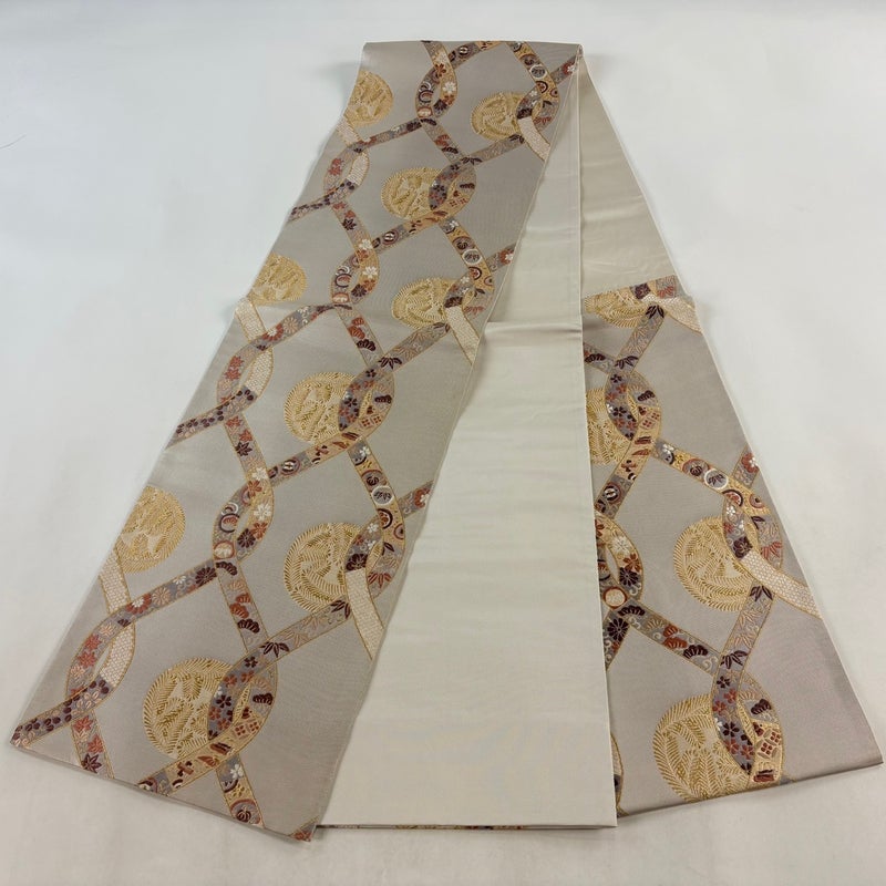 【袋帯】 灰色系 灰茶 秀品 A 帯丈436cm以上 7990-9980 美品 二万以下