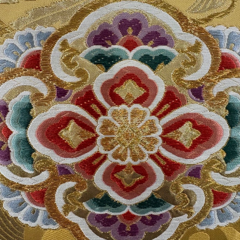 おめでたい席に相応しい意匠の袋帯でございます。 格式高いお席にもお使いいただけますので、お見逃しのないようお願いいたします。 締め跡がございます。 表地所々に唐織の糸ゆるみがございます。 リユース品としては良い状態で、まだまだご活用頂けると思われます。 ※なお、厳しく商品の状態確認を行っておりますが、記載の汚れ以外にも見落とし箇所がある可能性がある旨ご了承いただけますと幸いです。 沢山の商品の中からご覧いただき誠にありがとうございます。