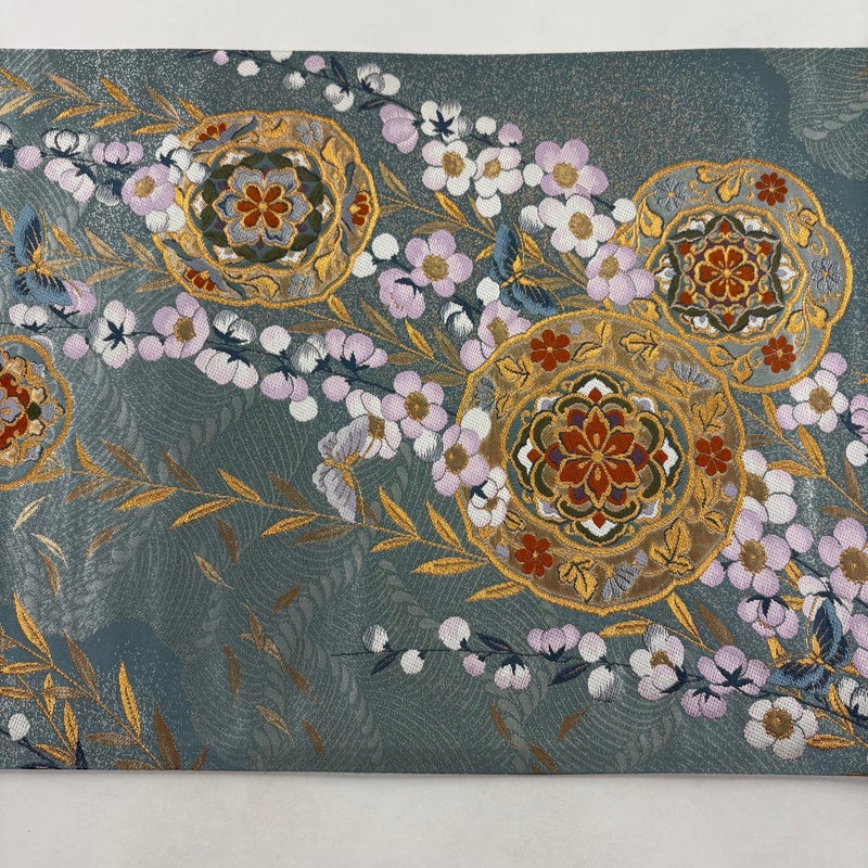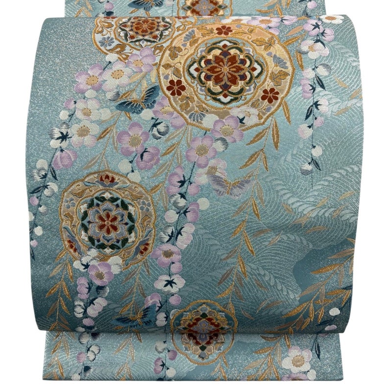 【袋帯】 青系 薄青緑 秀品 A 帯丈436cm以上 7990-9980 美品 二万以下