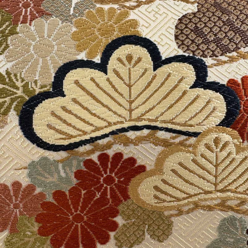 おめでたい席に相応しい意匠の袋帯でございます。 格式高いお席にもお使いいただけますので、お見逃しのないようお願いいたします。 締め跡がございます。 お太鼓付近に糸のほつれ、お太鼓に糸ゆるみがございます。 リユース品としては良い状態で、まだまだご活用頂けると思われます。 ※なお、厳しく商品の状態確認を行っておりますが、記載の汚れ以外にも見落とし箇所がある可能性がある旨ご了承いただけますと幸いです。 沢山の商品の中からご覧いただき誠にありがとうございます。