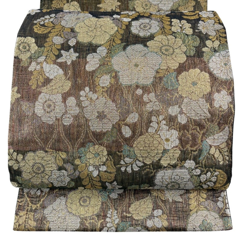 【袋帯】 茶系 茶緑色 名品 A 帯丈436cm以上 9990-29990 美品 二万以下