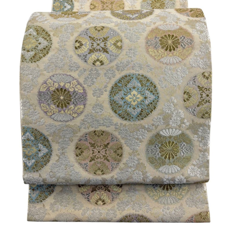 【着物ランク】名品 【素材】正絹 【帯丈】約426cm 【帯幅】約30.5cm 【帯仕立て】仕立て上がり 【状態ランク】ランクB 【帯着用シーン】セミフォーマル(色無地・付下げ)