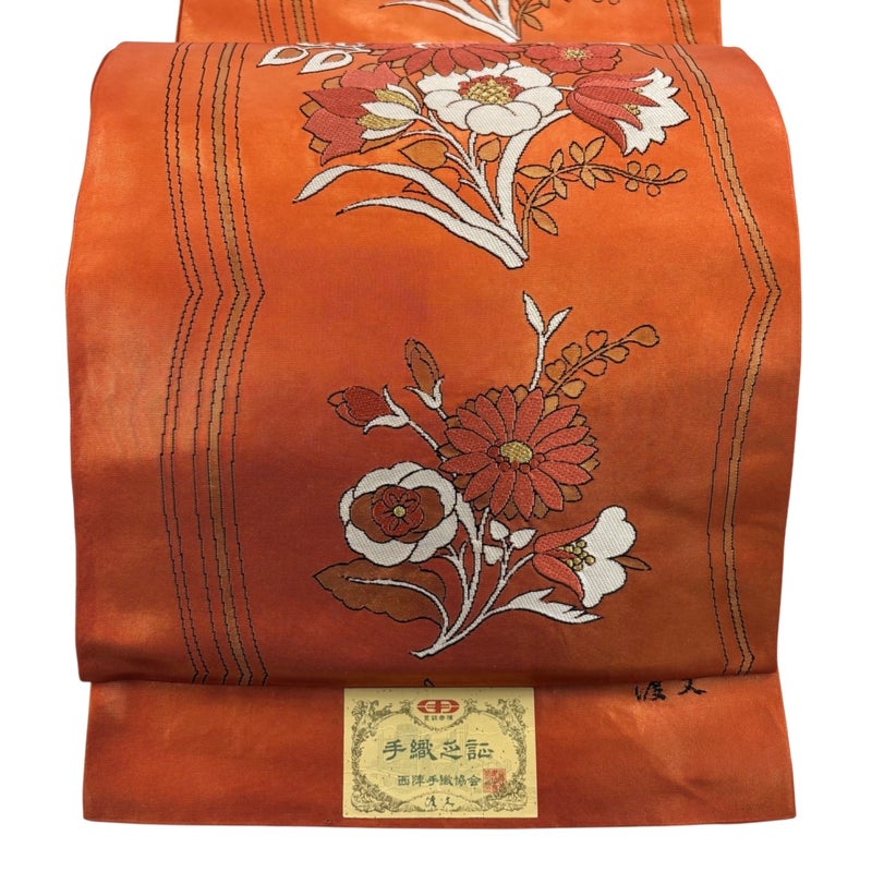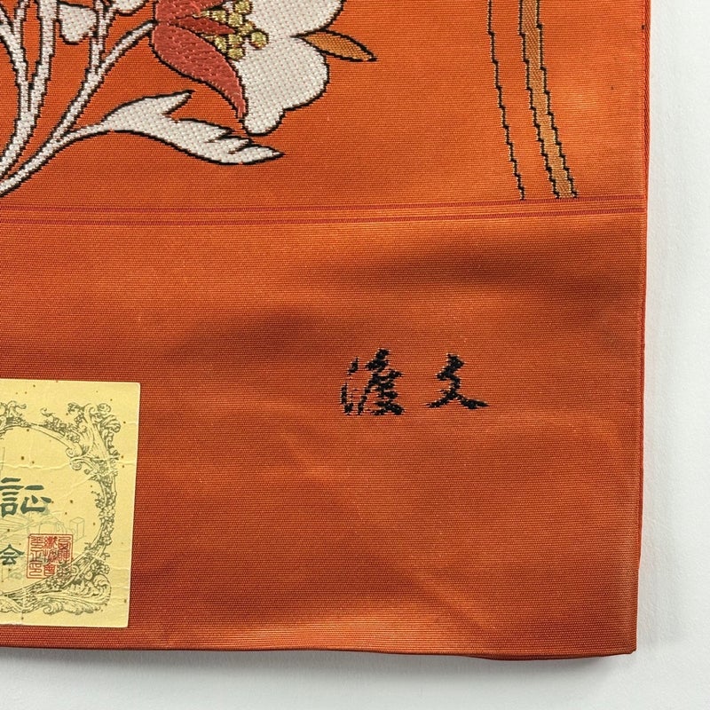 【着物ランク】名品 【素材】正絹 【帯丈】約444cm 【帯幅】約31cm 【帯仕立て】未仕立て 【状態ランク】ランクB 【作家名】渡文 【帯着用シーン】セミフォーマル(色無地・付下げ)