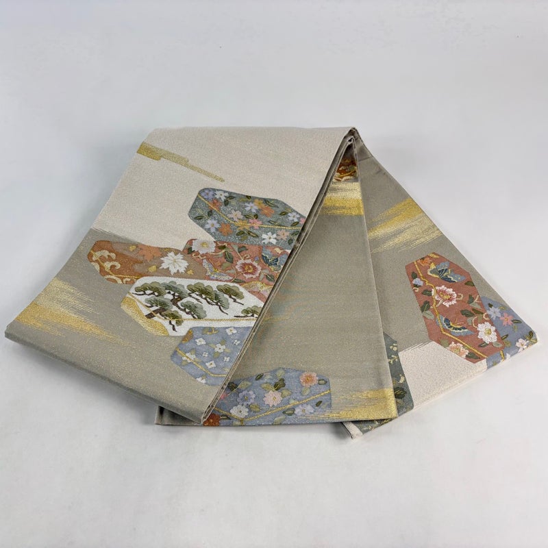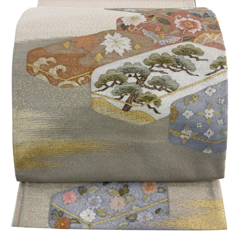 【袋帯】 白系 ベージュ 名品 A 帯丈436cm以上 9990-29990 美品 二万以下
