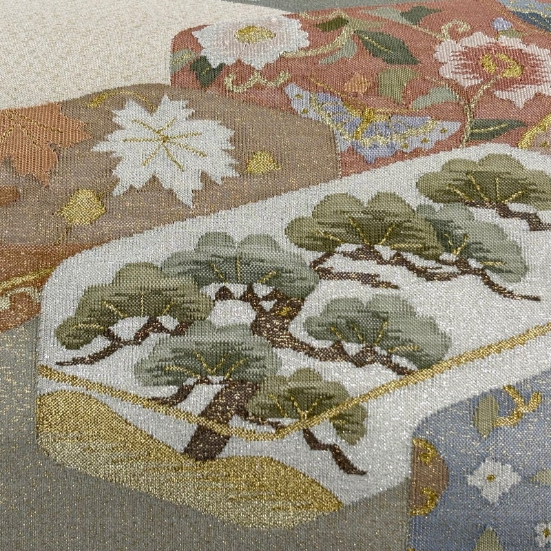おめでたい席に相応しい意匠の袋帯でございます。 格式高いお席にもお使いいただけますので、お見逃しのないようお願いいたします。 リユース品としては目立った染み傷なく、状態の良いお品でございます。 ※なお、厳しく商品の状態確認を行っておりますが、記載の汚れ以外にも見落とし箇所がある可能性がある旨ご了承いただけますと幸いです。 沢山の商品の中からご覧いただき誠にありがとうございます。
