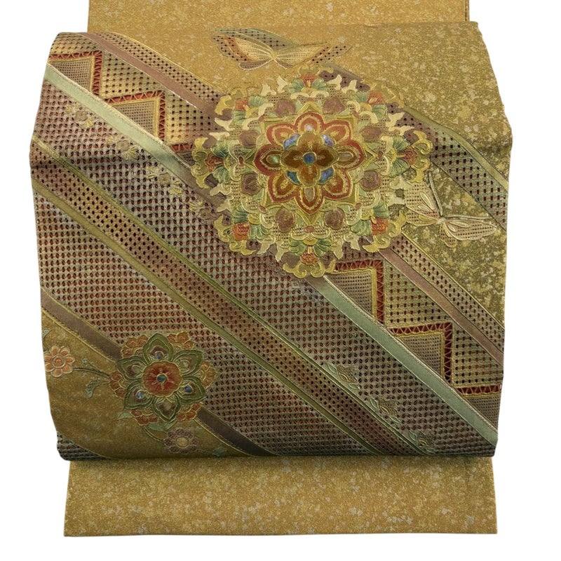 【袋帯】 黄色系 山吹茶色 秀品 B 帯丈426cm~435cm 4000-7980 二万以下