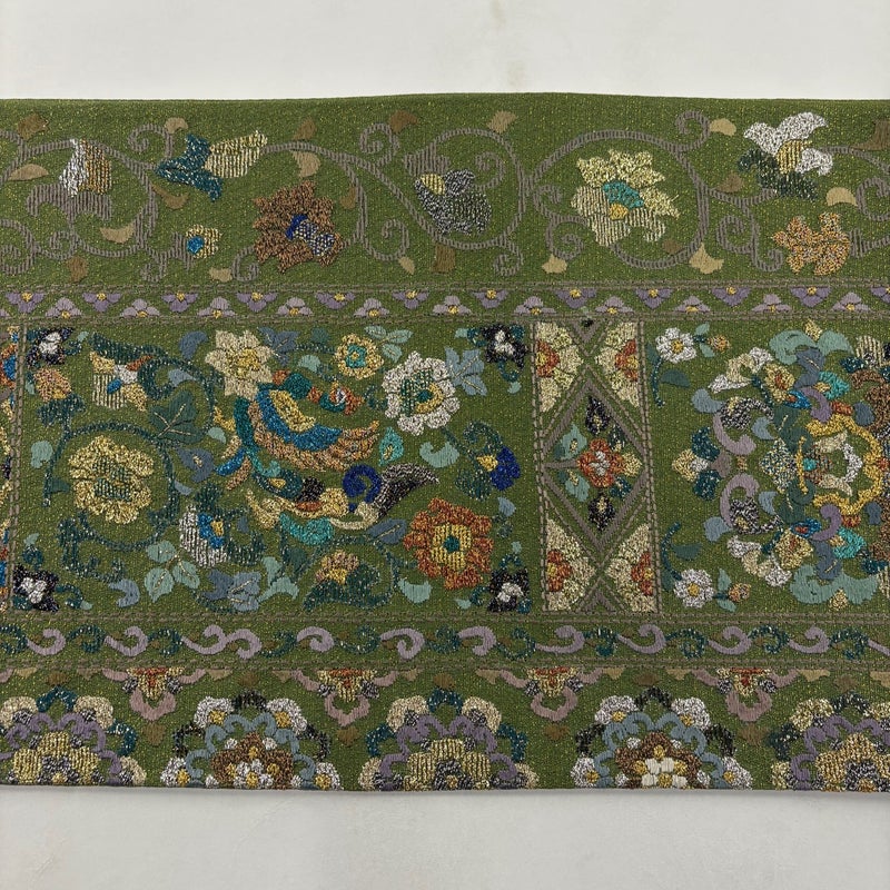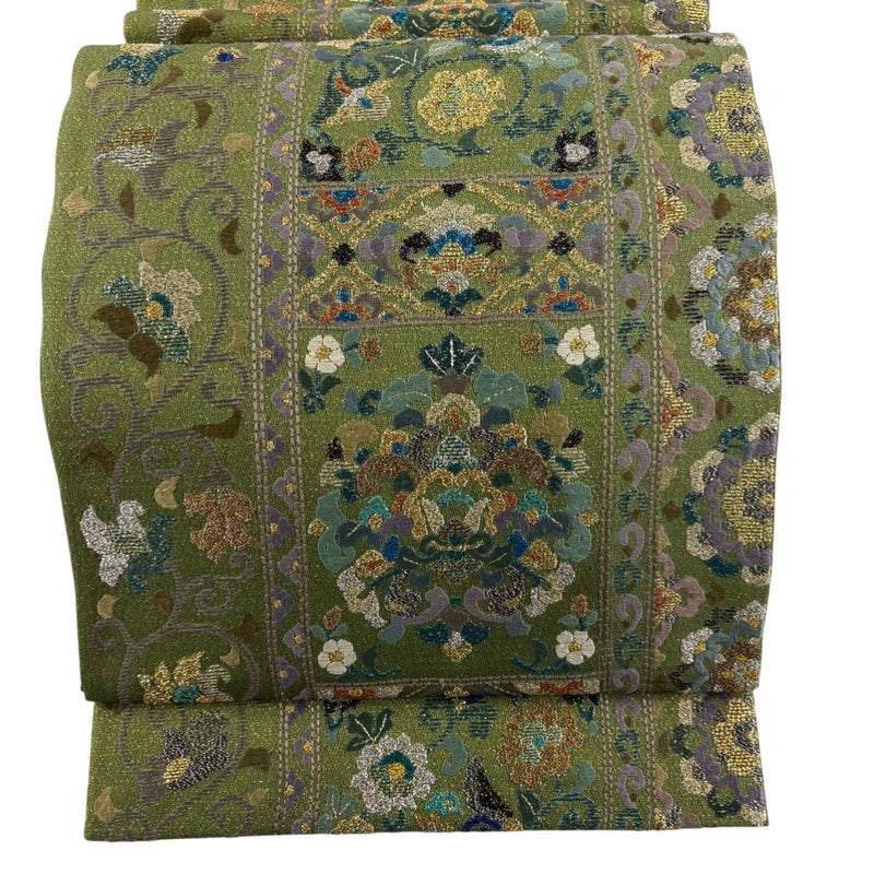 【袋帯】 緑系 鶯色 秀品 B 帯丈436cm以上 4000-7980 二万以下