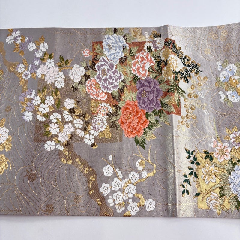 【着物ランク】秀品 【素材】正絹 【帯丈】約428cm 【帯幅】約30.5cm 【帯仕立て】仕立て上がり 【状態ランク】ランクA 【帯着用シーン】フォーマル(留袖・振袖・訪問着)