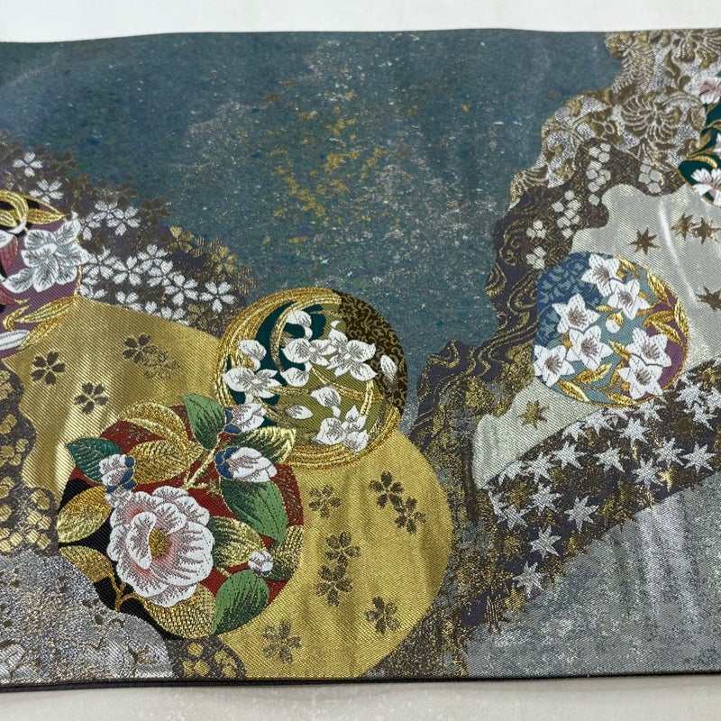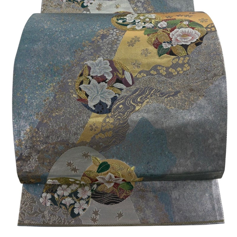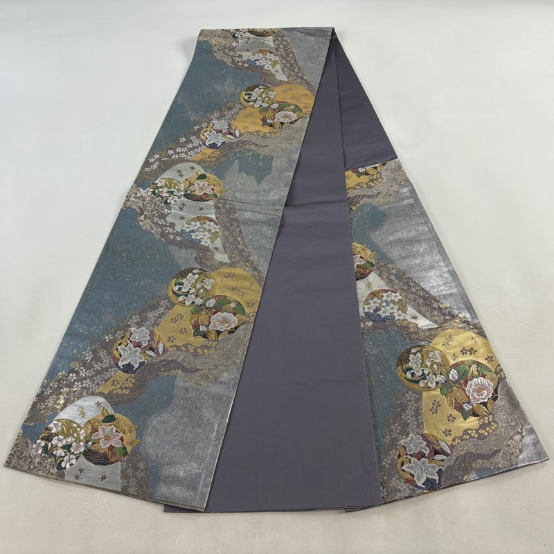 【袋帯】 灰色系 青灰色 秀品 A 帯丈436cm以上 7990-9980 美品 二万以下