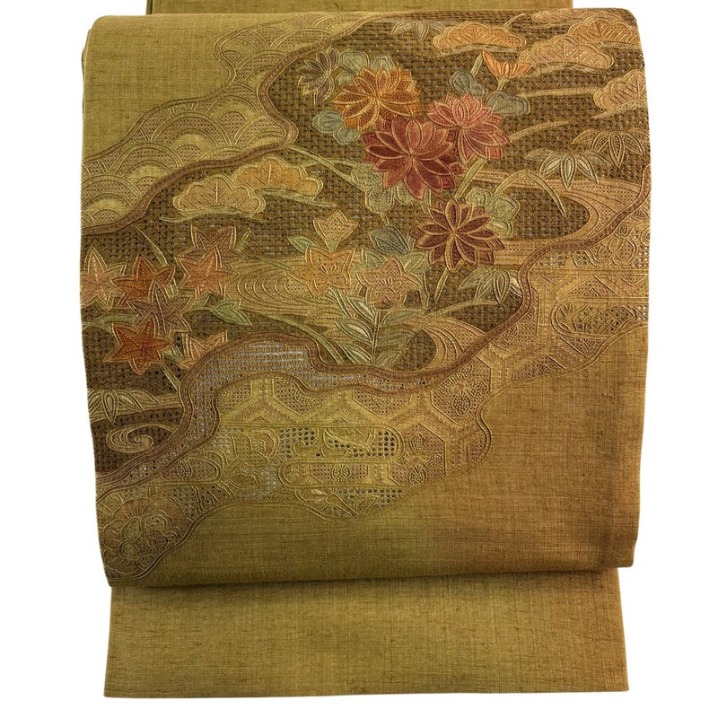 【袋帯】 緑系 鶯色 秀品 B 帯丈436cm以上 4000-7980 二万以下