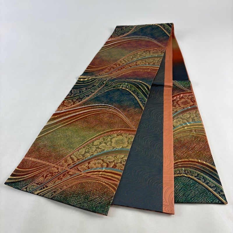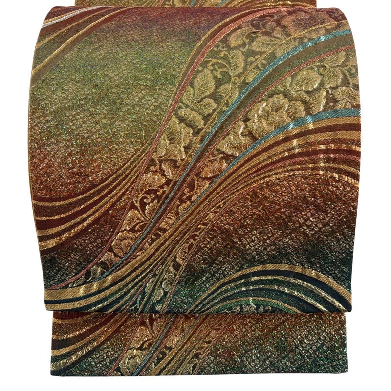 【袋帯】 茶系 茶緑色 秀品 A 帯丈401cm~425cm 7990-9980 美品 二万以下