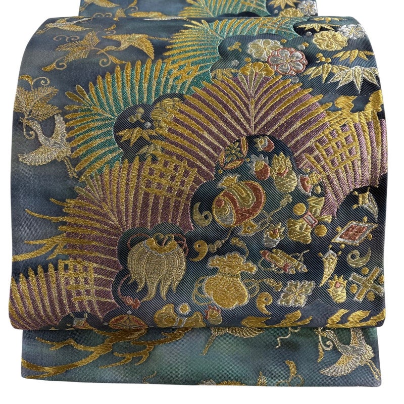 おめでたい席に相応しい意匠の袋帯でございます。 格式高いお席にもお使いいただけますので、お見逃しのないようお願いいたします。 締め跡がございます。 表地所々と中無地にシワ、表地所々に若干の糸のほつれがございます。 裏地所々にシワがございます。 リユース品としては目立った染み傷なく、状態の良いお品でございます。 ※なお、厳しく商品の状態確認を行っておりますが、記載の汚れ以外にも見落とし箇所がある可能性がある旨ご了承いただけますと幸いです。 沢山の商品の中からご覧いただき誠にありがとうございます。