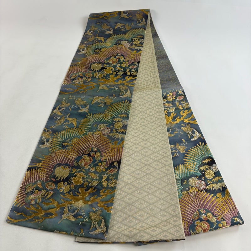 【袋帯】 青系 青緑 秀品 A 帯丈436cm以上 7990-9980 美品 二万以下