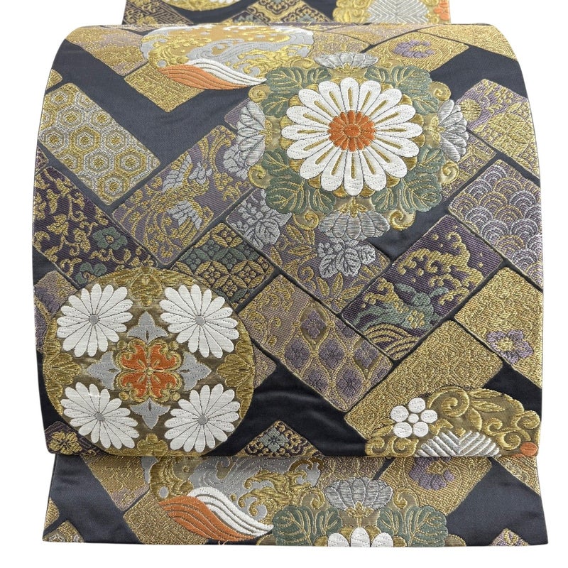 【袋帯】 灰色系 黒灰 秀品 A 帯丈401cm~425cm 7990-9980 美品 二万以下