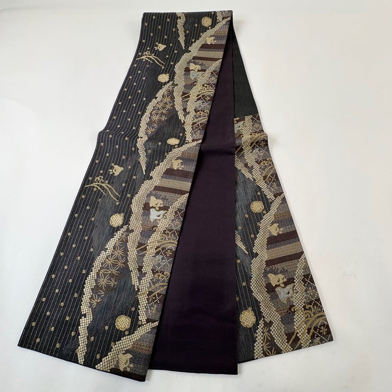 【袋帯】 黒系 墨色 秀品 A 帯丈436cm以上 7990-9980 美品 二万以下