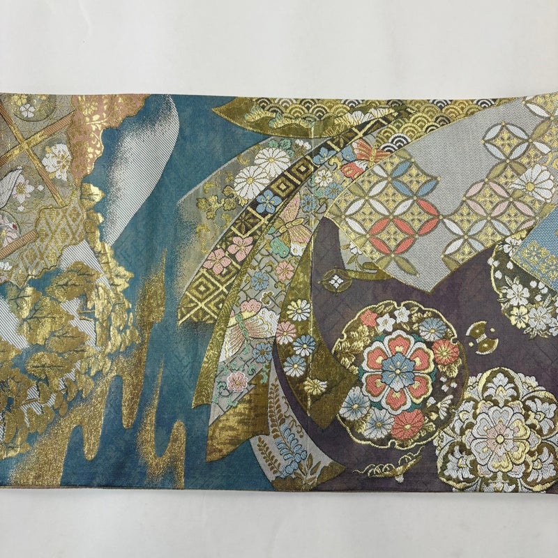 【袋帯】 灰色系 灰緑 秀品 A 帯丈436cm以上 7990-9980 美品 二万以下