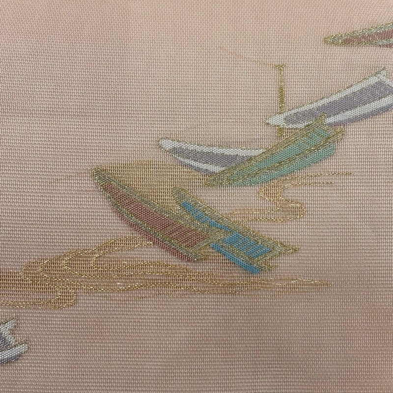 夏帯でございます。 セミフォーマルでお使いいただける袋帯でございます。 見る人に重たい印象を感じさせない女性ならではの、気品豊かな一品です。 締め跡がございます。 リユース品としては目立った染み傷なく、状態の良いお品でございます。 ※なお、厳しく商品の状態確認を行っておりますが、記載の汚れ以外にも見落とし箇所がある可能性がある旨ご了承いただけますと幸いです。 沢山の商品の中からご覧いただき誠にありがとうございます。