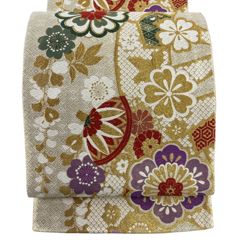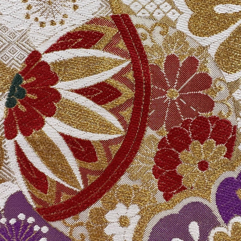 おめでたい席に相応しい意匠の袋帯でございます。 格式高いお席にもお使いいただけますので、お見逃しのないようお願いいたします。 締め跡がございます。 垂先に仕立ての歪みがございます。 垂先の裏地にシワがございます。 リユース品としては良い状態で、まだまだご活用頂けると思われます。 ※なお、厳しく商品の状態確認を行っておりますが、記載の汚れ以外にも見落とし箇所がある可能性がある旨ご了承いただけますと幸いです。 沢山の商品の中からご覧いただき誠にありがとうございます。
