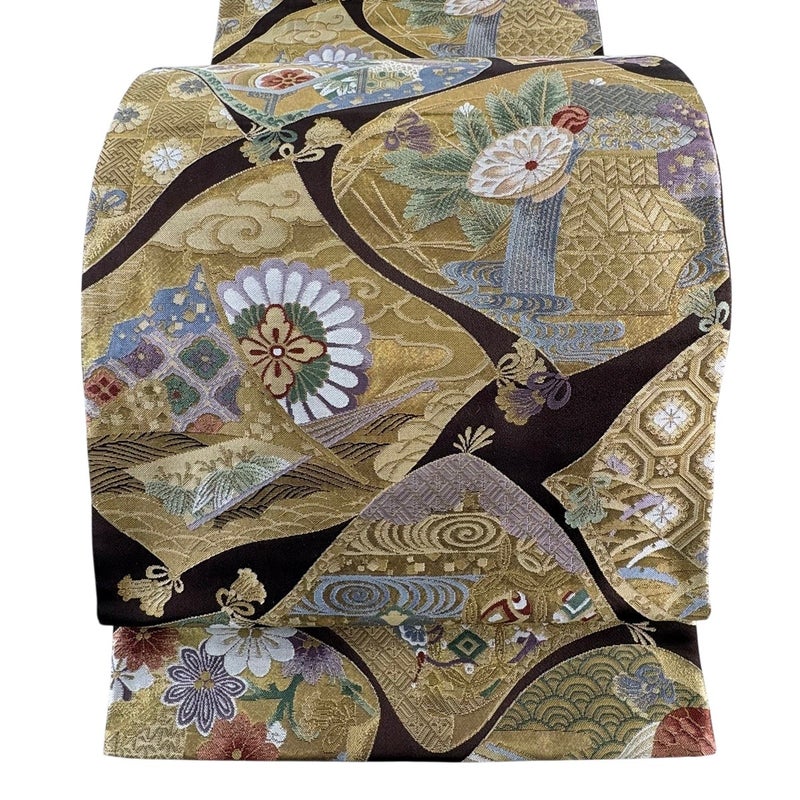 【袋帯】 茶系 焦茶色 秀品 A 帯丈426cm~435cm 7990-9980 美品 二万以下