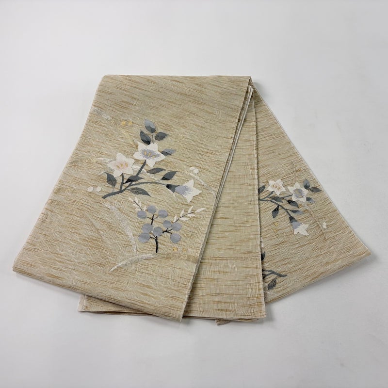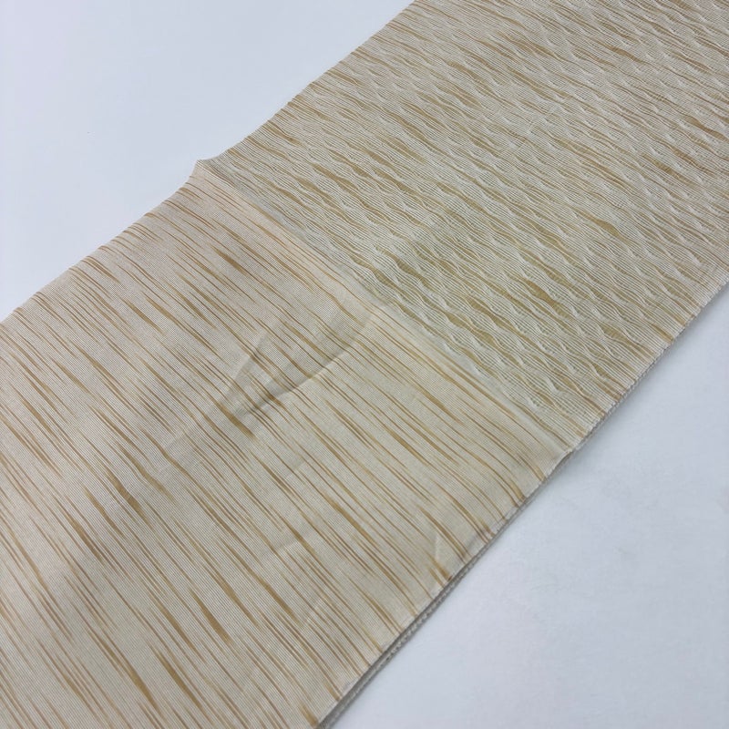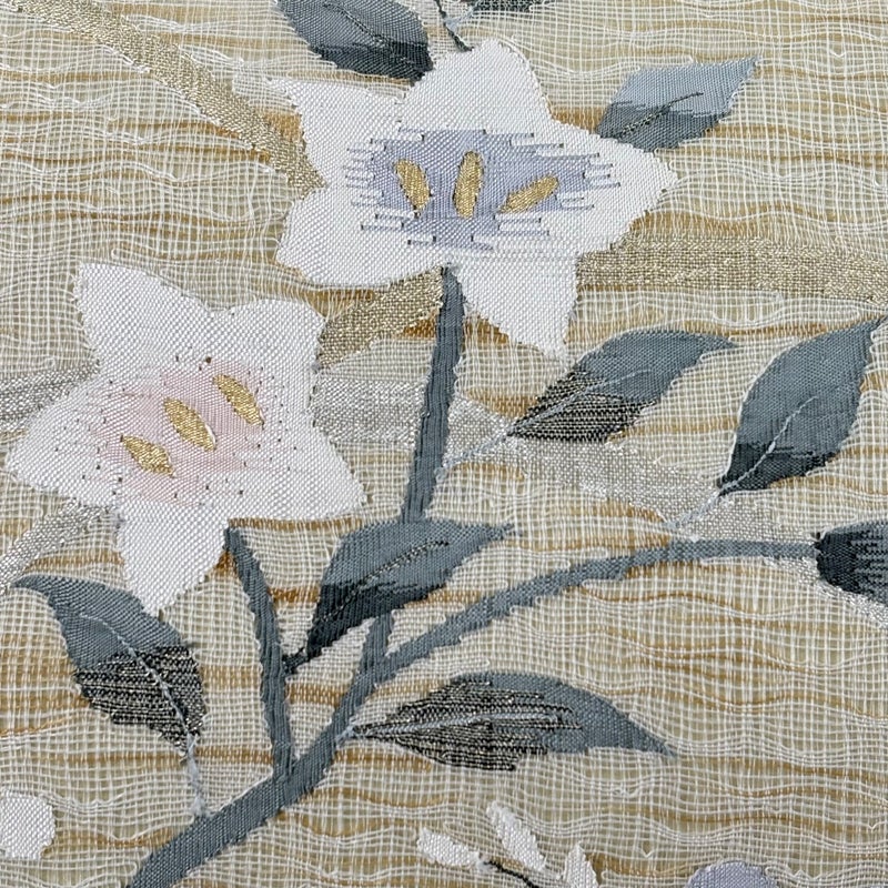 夏帯でございます。 セミフォーマルでお使いいただける袋帯でございます。 見る人に重たい印象を感じさせない女性ならではの、気品豊かな一品です。 締め跡がございます。 リユース品としては目立った染み傷なく、状態の良いお品でございます。 ※なお、厳しく商品の状態確認を行っておりますが、記載の汚れ以外にも見落とし箇所がある可能性がある旨ご了承いただけますと幸いです。 沢山の商品の中からご覧いただき誠にありがとうございます。