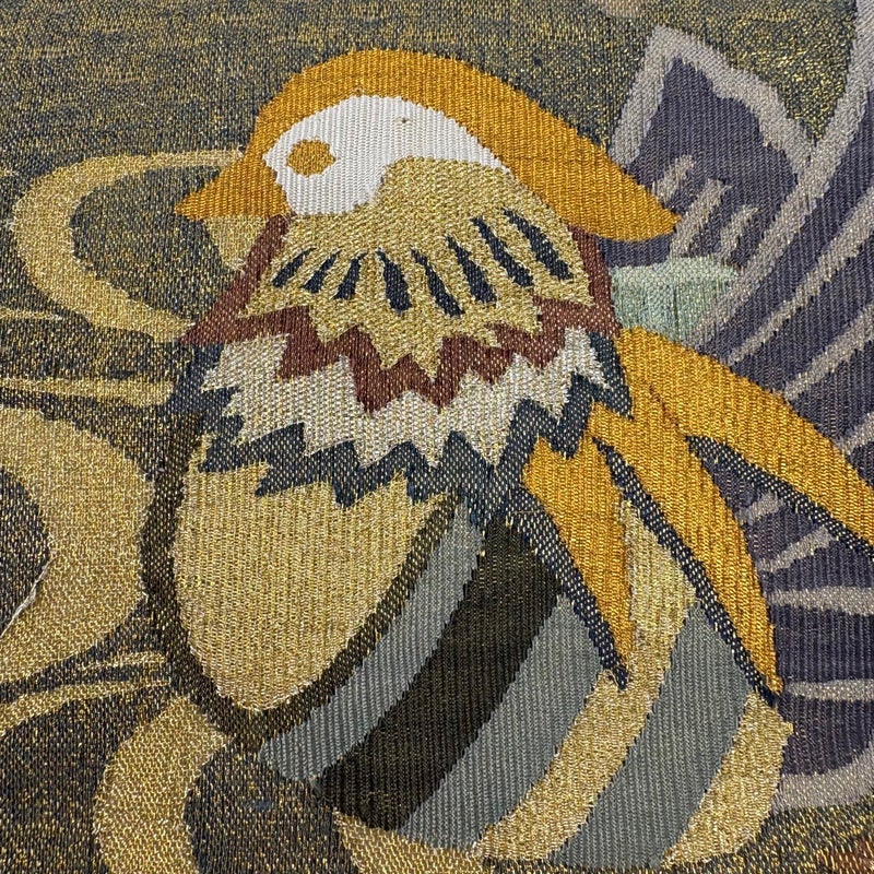 おめでたい席に相応しい意匠の袋帯でございます。 格式高いお席にもお使いいただけますので、お見逃しのないようお願いいたします。 お太鼓付近と前柄柄部分に金糸ゆるみがございます。 リユース品としては良い状態で、まだまだご活用頂けると思われます。 ※なお、厳しく商品の状態確認を行っておりますが、記載の汚れ以外にも見落とし箇所がある可能性がある旨ご了承いただけますと幸いです。 沢山の商品の中からご覧いただき誠にありがとうございます。