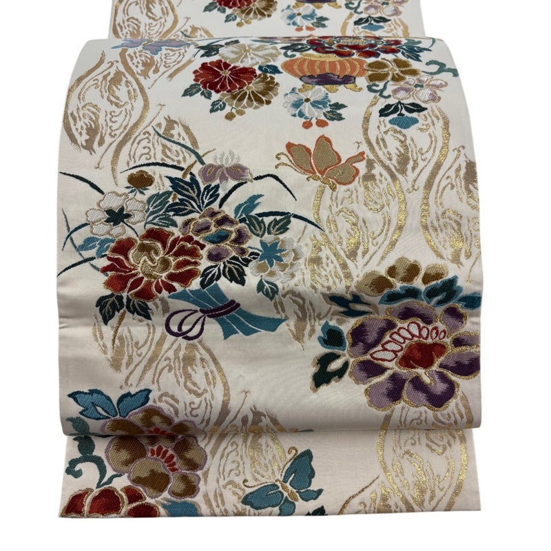 【袋帯】 白系 クリーム 秀品 B 帯丈401cm~425cm 4000-7980 二万以下