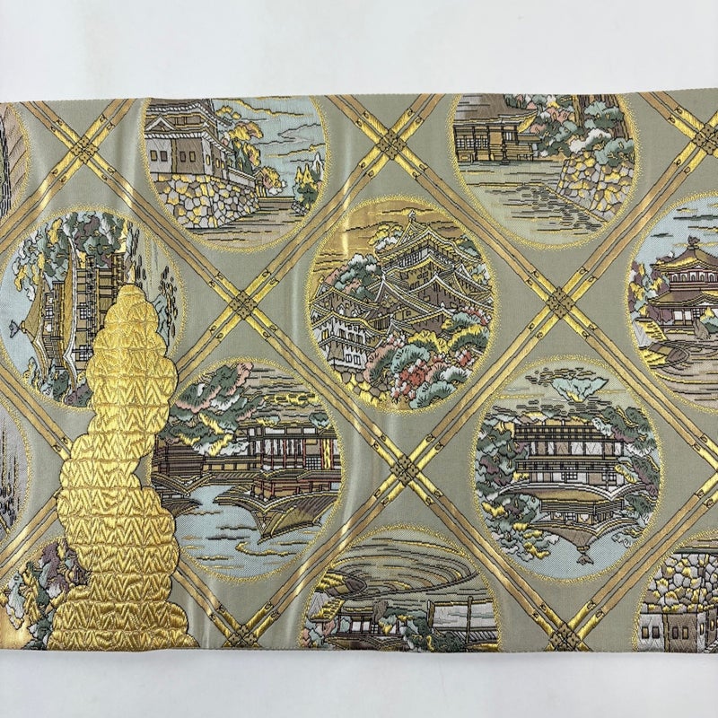 【袋帯】 灰色系 灰緑 秀品 B 帯丈436cm以上 4000-7980 二万以下