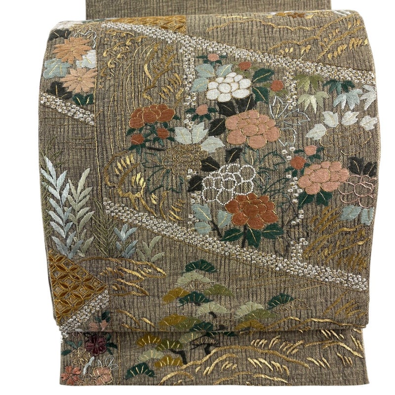 セミフォーマルでお使いいただける袋帯でございます。 見る人に重たい印象を感じさせない女性ならではの、気品豊かな一品です。 リユース品としては目立った染み傷なく、状態の良いお品でございます。 ※なお、厳しく商品の状態確認を行っておりますが、記載の汚れ以外にも見落とし箇所がある可能性がある旨ご了承いただけますと幸いです。 沢山の商品の中からご覧いただき誠にありがとうございます。