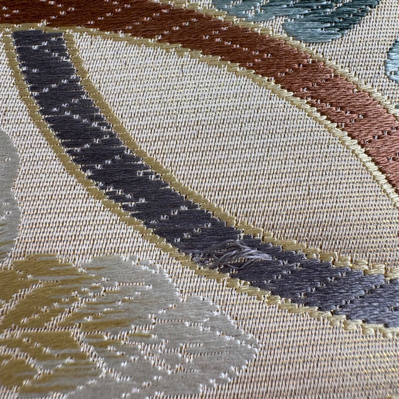 おめでたい席に相応しい意匠の袋帯でございます。 格式高いお席にもお使いいただけますので、お見逃しのないようお願いいたします。 締め跡がございます。 表地所々にシワ、表地所々に若干ですが糸ゆるみがございます。 リユース品としては目立った染み傷なく、状態の良いお品でございます。 ※なお、厳しく商品の状態確認を行っておりますが、記載の汚れ以外にも見落とし箇所がある可能性がある旨ご了承いただけますと幸いです。 沢山の商品の中からご覧いただき誠にありがとうございます。