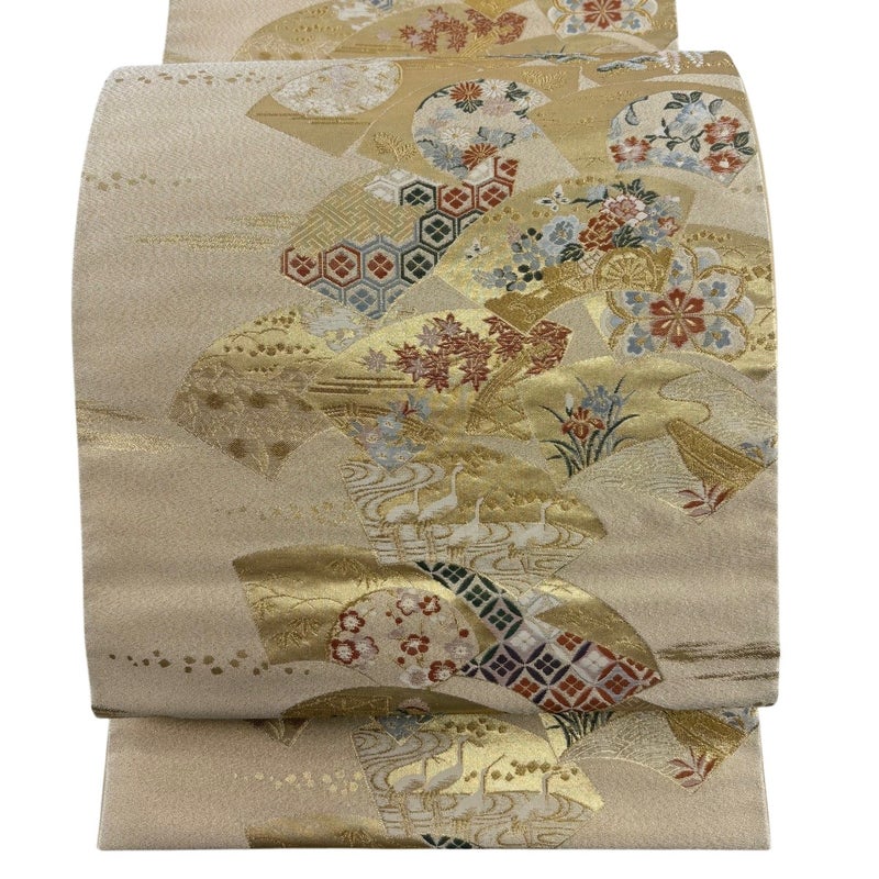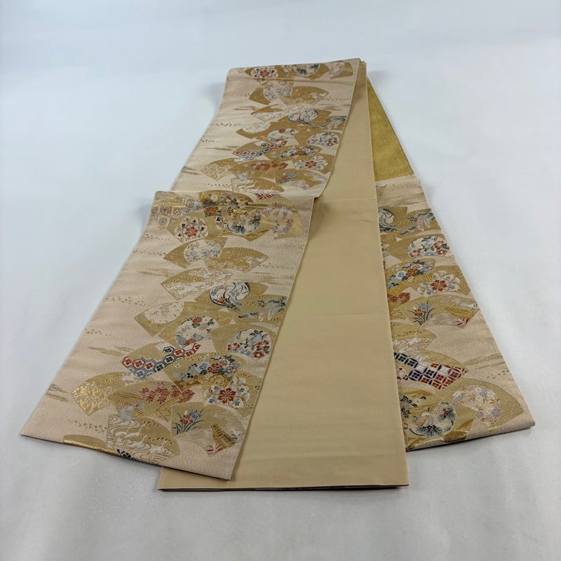 【袋帯】 白系 ベージュ 秀品 A 帯丈426cm~435cm 7990-9980 美品 二万以下
