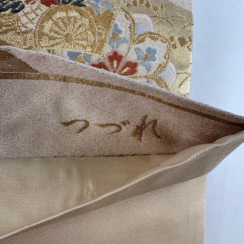 セミフォーマルでお使いいただける袋帯でございます。 見る人に重たい印象を感じさせない女性ならではの、気品豊かな一品です。 締め跡がございます。 中無地に線状の生地の変色がございます。 リユース品としては目立った染み傷なく、状態の良いお品でございます。 ※なお、厳しく商品の状態確認を行っておりますが、記載の汚れ以外にも見落とし箇所がある可能性がある旨ご了承いただけますと幸いです。 沢山の商品の中からご覧いただき誠にありがとうございます。