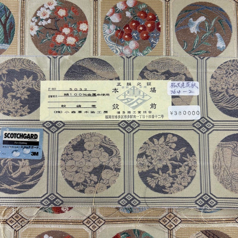 【着物ランク】秀品 【素材】正絹 【帯丈】約448cm 【帯幅】約31cm 【帯仕立て】仕立て上がり 【状態ランク】ランクB 【帯着用シーン】セミフォーマル(色無地・付下げ)