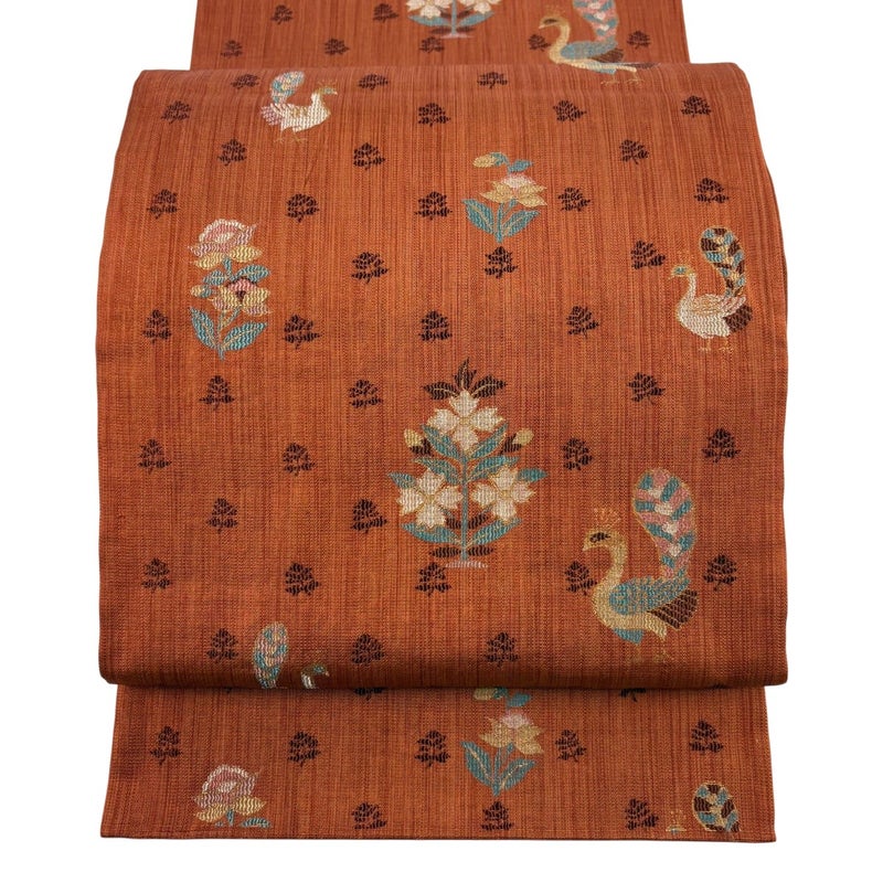 【袋帯】 赤系 オレンジ 秀品 A 帯丈436cm以上 7990-9980 美品 二万以下
