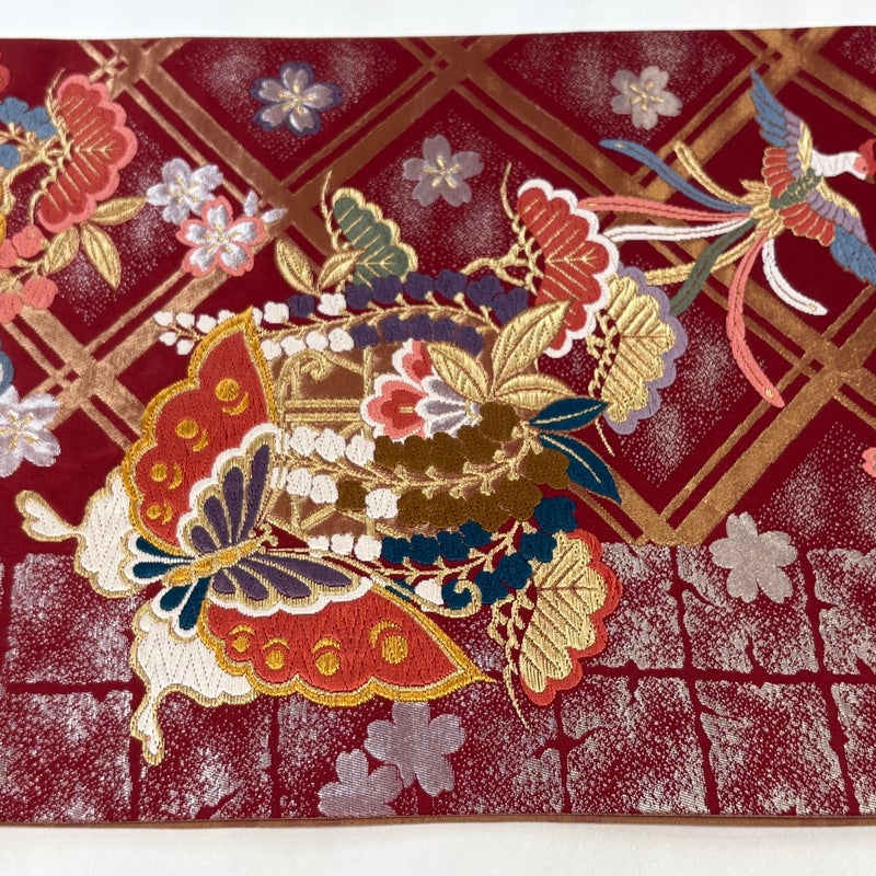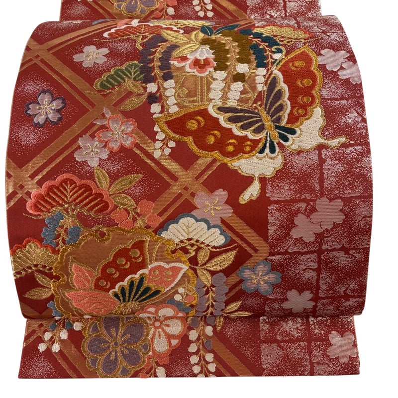 【袋帯】 赤系 茜色 秀品 A 帯丈436cm以上 7990-9980 美品 二万以下