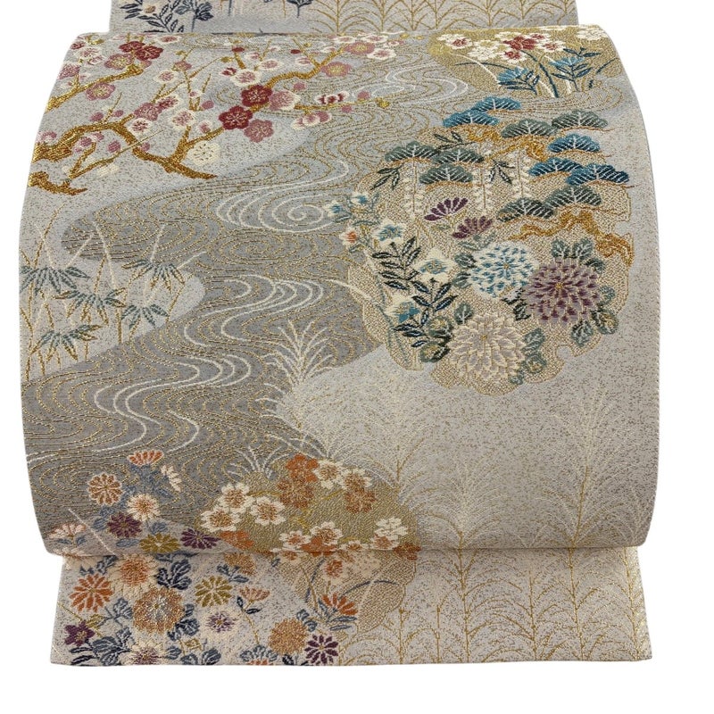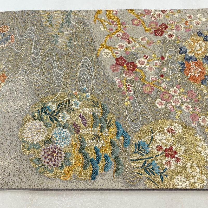【袋帯】 灰色系 灰緑 秀品 B 帯丈426cm~435cm 4000-7980 二万以下