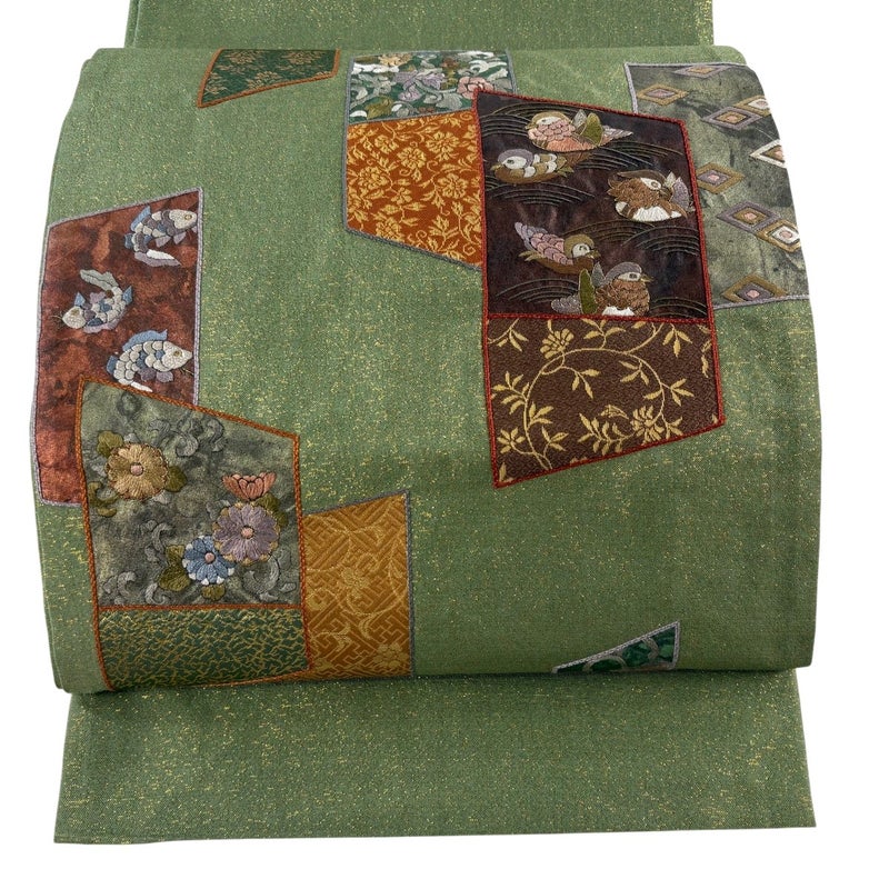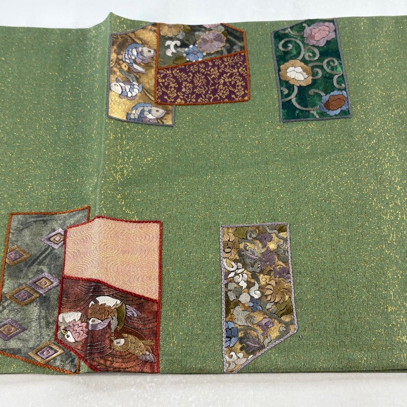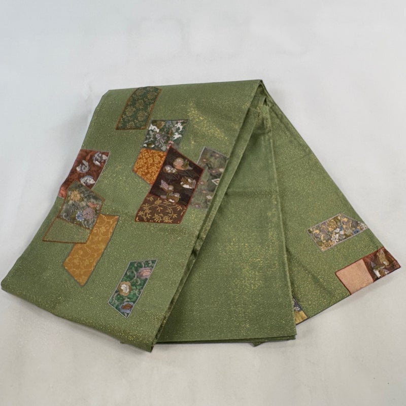 【袋帯】 緑系 よもぎ色 秀品 B 帯丈436cm以上 4000-7980 二万以下