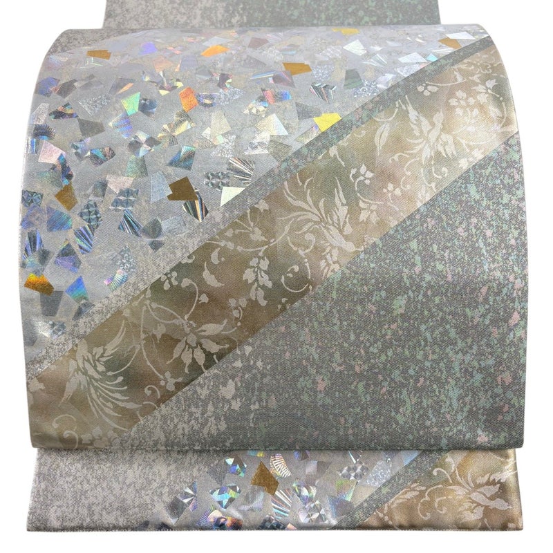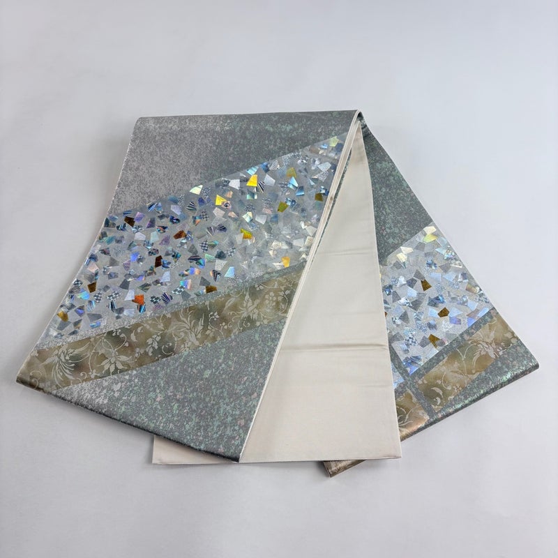 【袋帯】 灰色系 灰緑 名品 A 帯丈426cm~435cm 9990-29990 美品 二万以下
