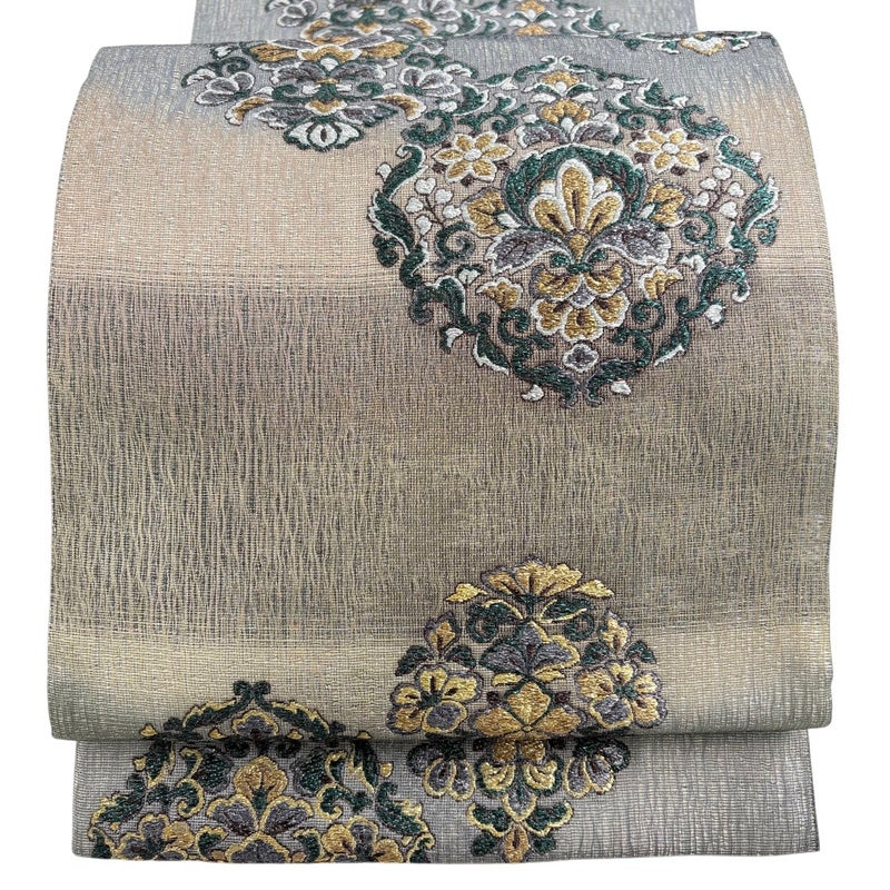 【着物ランク】名品 【素材】正絹 【帯丈】約432cm 【帯幅】約30.5cm 【帯仕立て】仕立て上がり 【状態ランク】ランクA 【帯着用シーン】セミフォーマル(色無地・付下げ)