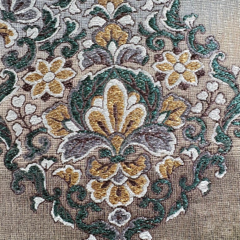 セミフォーマルでお使いいただける袋帯でございます。 見る人に重たい印象を感じさせない女性ならではの、気品豊かな一品です。 締め跡がございます。 中無地にシワがございます。 裏地所々にシワがございます。 リユース品としては目立った染み傷なく、状態の良いお品でございます。 ※なお、厳しく商品の状態確認を行っておりますが、記載の汚れ以外にも見落とし箇所がある可能性がある旨ご了承いただけますと幸いです。 沢山の商品の中からご覧いただき誠にありがとうございます。