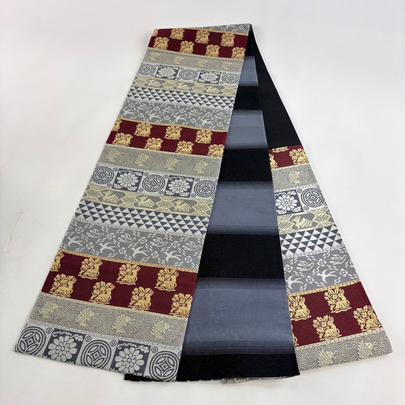 【袋帯】 灰色系 灰色 名品 A 帯丈436cm以上 9990-29990 美品 二万以下
