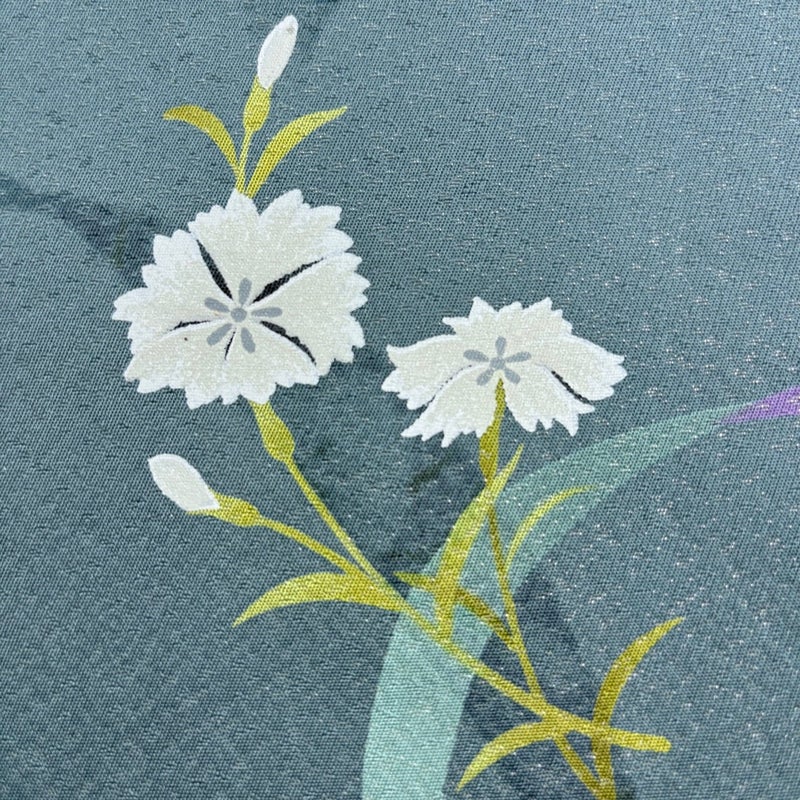 セミフォーマルでお使いいただける袋帯でございます。 見る人に重たい印象を感じさせない女性ならではの、気品豊かな一品です。 手先前柄間に生地のヨレ、前柄とお太鼓垂先間に薄ヤケがございます。 リユース品としては良い状態で、まだまだご活用頂けると思われます。 ※なお、厳しく商品の状態確認を行っておりますが、記載の汚れ以外にも見落とし箇所がある可能性がある旨ご了承いただけますと幸いです。 沢山の商品の中からご覧いただき誠にありがとうございます。