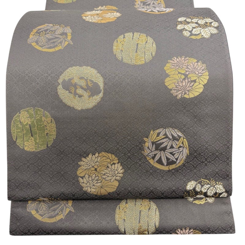【袋帯】 灰色系 灰茶 名品 A 帯丈436cm以上 9990-29990 美品 二万以下